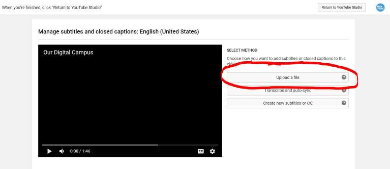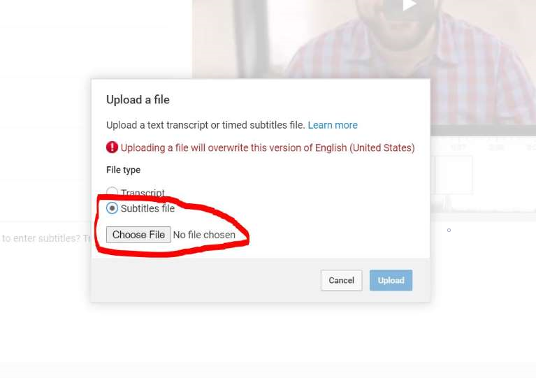 The file you’re choosing is the SRT file that the Web Producer provided. Make sure you’ve downloaded it already. Once you’ve selected it, click “Upload”.