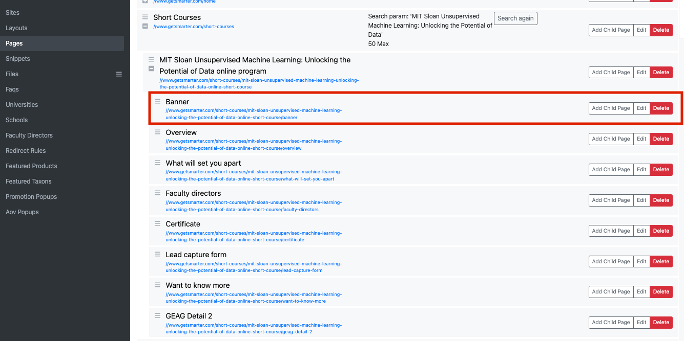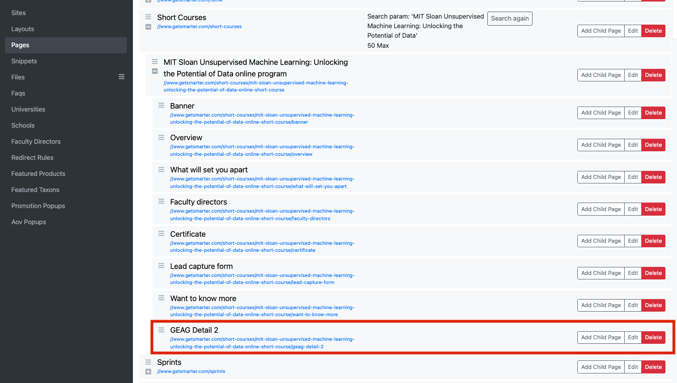 3. Open the GEAG Detail 2 child page, using the Edit button.