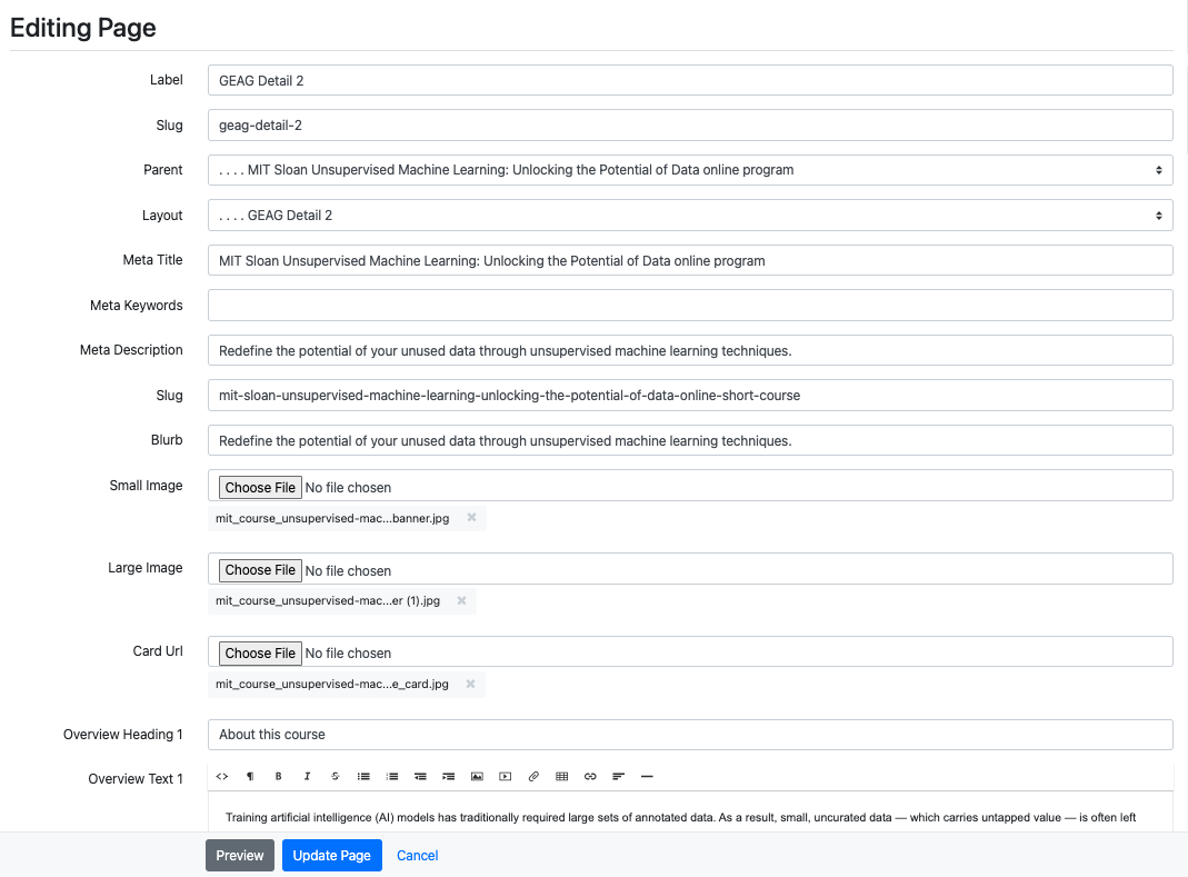 GEAG is the is how content passes from the Titan CMS to the edX site. All our Executive Education programs have a corresponding page on edx with their content uploaded through GEAG.