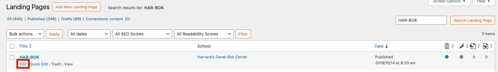 3. Use the Program Acronym (ex. HAR-BOK) to search for your page and click ‘Edit’